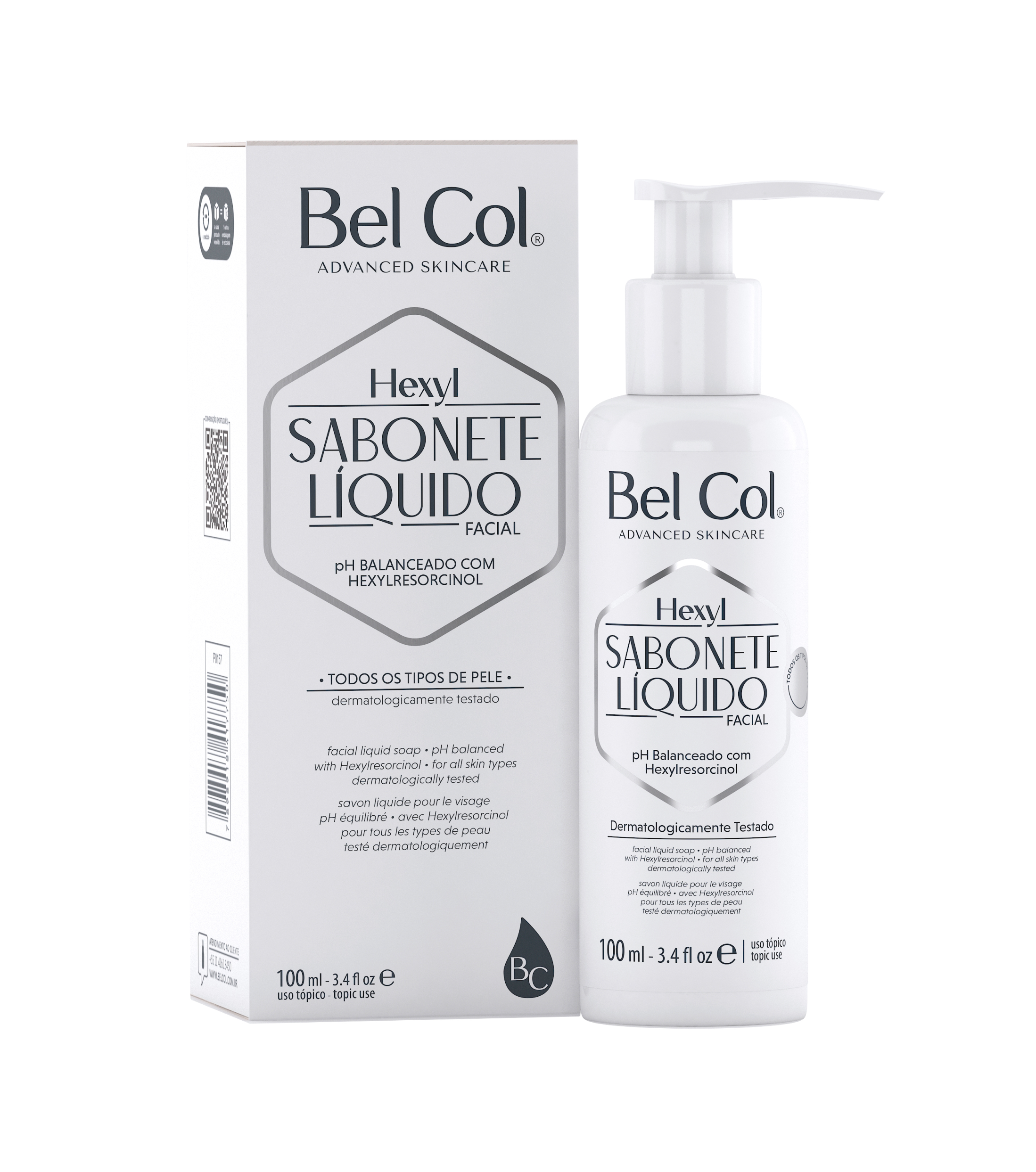 O sabonete líquido Hexyl.4R Bel Col é indicado para todos os biotipos cutâneos, com seu pH balanceado, permite a remoção das impurezas sem agredir e desidratar a pele. Enriquecido com Hexylresorcinol, ativo seguro e eficaz, é o complemento perfeito para os tratamentos cosméticos de clareamento em todas as estações do ano.