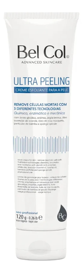 Ultra Peeling Bel Col é um esfoliante de última geração composto por três tipos de esfoliantes, físico, químico e enzimático. Uma combinação perfeita para romper a barreira da capa córnea para intensificar qualquer tratamento estético para a pele. Oferece remoção das células mortas, limpeza purificante e profunda eliminando as impurezas e toxinas da pele. Possui ação hidratante, clareadora e uniformizante, além de atuar no tratamento de rugas e linhas de expressão.